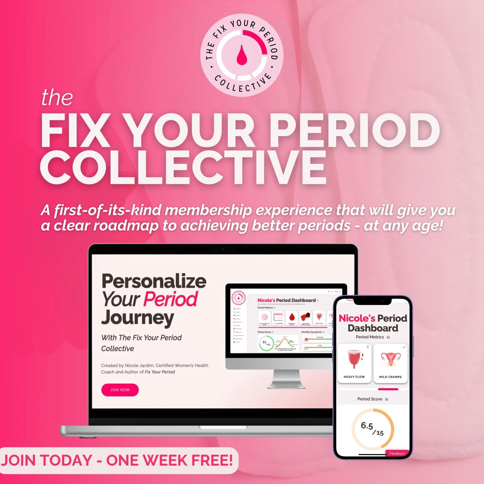 The Fix Your Period Collective is a brand new, first-of-its-kind membership platform that provides a clear roadmap to achieving better periods, no matter your age. It starts with a period quiz and exclusive access to YOUR OWN personalized period dashboard, which contains all your period quiz answers displayed in an easy-to-understand way. You’ll also get an in-depth 7-module course, condition-specific video protocols, live support, 100’s of recipes full of hormone-healthy delights, a fully stocked shop with every supplement and period-supportive product you can imagine, and a vibrant community.